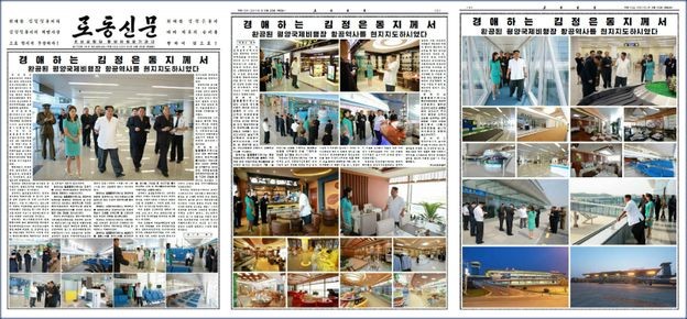 Trên một số trang của nhật báo Rodong Sinmun – tờ báo chính thức của đảng Lao động cầm quyền, người ta thấy những hình ảnh của nhà lãnh đạo Triều Tiên Kim Jong-Un cùng vợ đi kiểm tra các nhà hàng và cửa hiệu tại nhà ga sân bay mới ở Bình Nhưỡng.