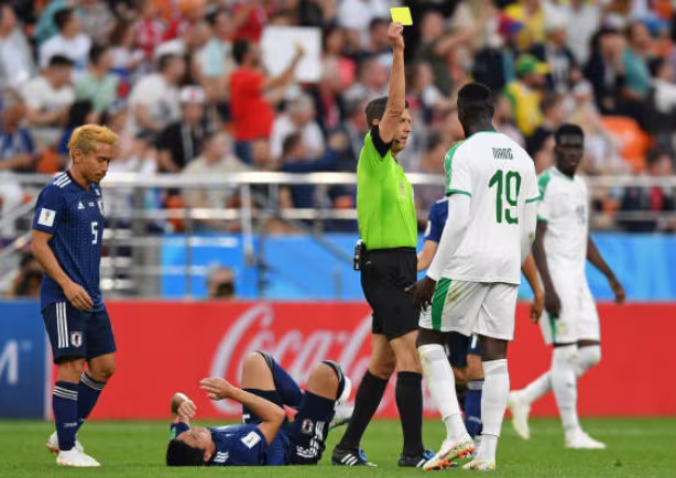 Ở tình huống phút 58 của trận đấu, Niang (Senegal) có hành vi vung tay trúng mặt Gen Shoji (Nhật Bản) và trọng tài Gianluca Rocchi đã cho dừng trận đấu để rút thẻ vàng phạt Niang vì vào bóng liều lĩnh với đối phương.