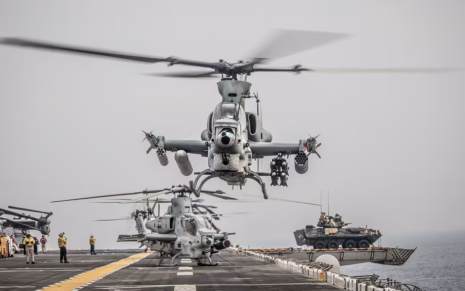 ANTD.VN - Ngày 22/9, trực thăng chiến đấu AH-1Z Viper của thủy quân lục chiến Mỹ thuộc đơn vị viễn chinh số 22 đã thực hiện cuộc diễn tập bắn đạn thật trên vùng biển Caribe, nhấn mạnh khả năng phối hợp tác chiến không - hải trong môi trường biển khơi.