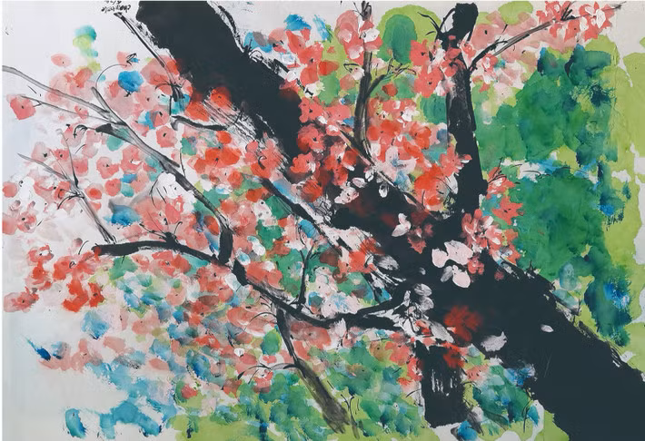 | Các tác phẩm "Hoa Anh đào trên núi Phú Sĩ" của tác giả Manling Cheung được trưng bày tại triển lãm |