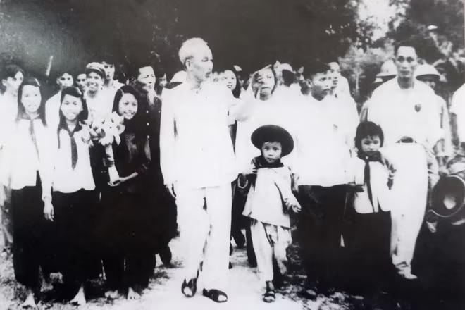 Bác Hồ cùng các cháu thiếu nhi Làng Sen, Kim Liên, Nam Đàn, Nghệ An