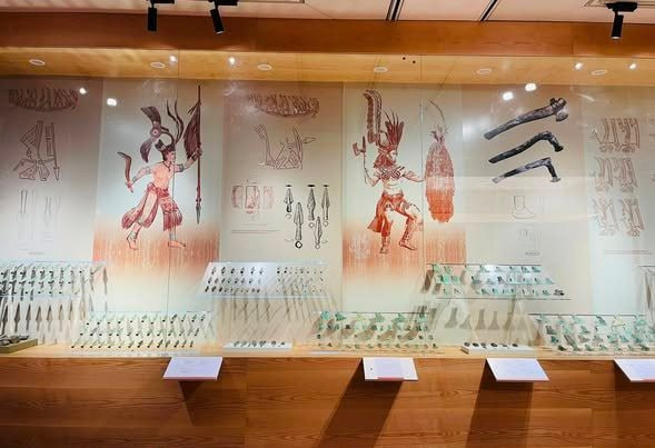 Một số hiện vật nổi bật phải kể tới rìu bích chất liệu đá ngọc màu xanh - biểu trưng quyền lực thủ lĩnh, là đồ tùy táng trong một ngôi mộ giai đoạn Tiền Đông Sơn cách nay khoảng 3.500 năm; vật đeo mô phỏng hình đầu chim phượng; sưu tập đồ ngọc gồm vật trang sức vòng, khuyên tai, chuỗi hạt hay những vật tượng trưng cho quyền lực của tầng lớp thủ lĩnh (nha chương, vật đeo dạng mũi nhọn…
