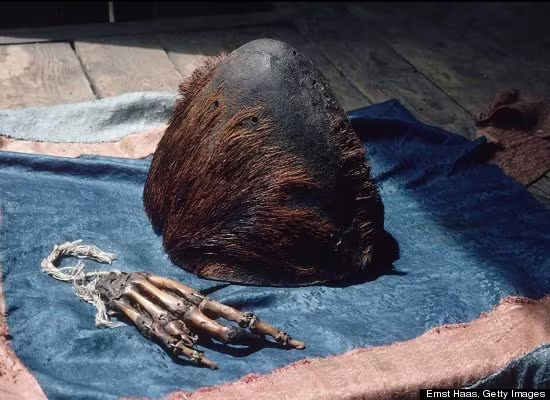 Hộp sọ và xương bàn tay của "người tuyết" được trưng bày