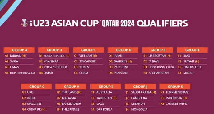 Chiều 25-5, Liên đoàn bóng đá châu Á (AFC) tiến hành bốc thăm vòng loại U23 châu Á 2024.