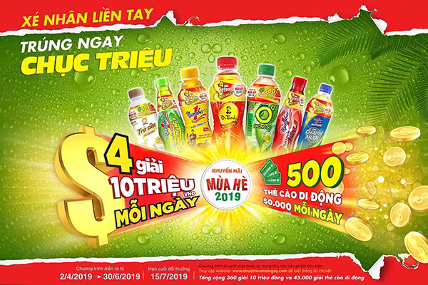 Theo đó, chương trình khuyến mãi hè của Tân Hiệp Phát diễn ra từ ngày 02/4 đến 30/06/2019. Trong thời gian này, mỗi ngày đều có chương trình quay số để chọn ra 4 giải thưởng 10 triệu đồng và 500 giải thưởng là thẻ cào điện thoại (mệnh giá 50 nghìn đồng).