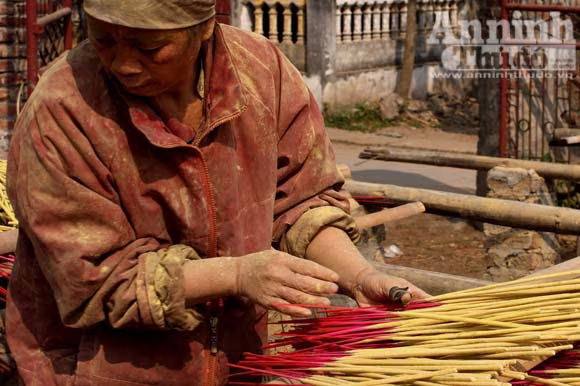 Những hình ảnh dưới đây sẽ cho ta cảm nhận được sự lao động hết sức vất vả của người làm nghề hương ở nơi này, song đã mang cái nghiệp vào thân cho nên người làng nghề bỏ qua tất cả để “nối” nghề từ xưa đến nay, mặc dù giờ đây nghề làm hương thực sự ảnh hưởng đến sức khỏe và môi trường.