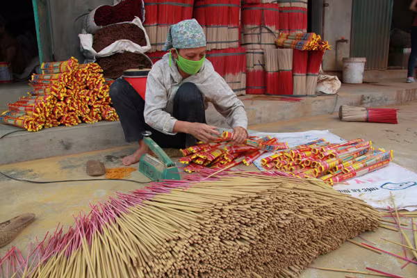 Làng Cao Thôn không chỉ sản xuất hương nén mà còn sản xuất rất nhiều hương vòng
