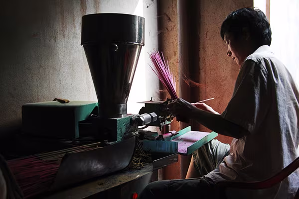 Để chất lượng được tốt nhất, tăm hương sẽ phải phơi thật khô trước khi được cho cho vào máy để làm hương