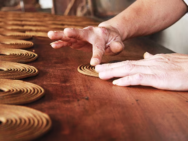 Dưới bàn tay khéo léo của người thợ, những “sợi” hương sẽ được quấn thành những vòng tròn với nhiều mùi hương khác nhau