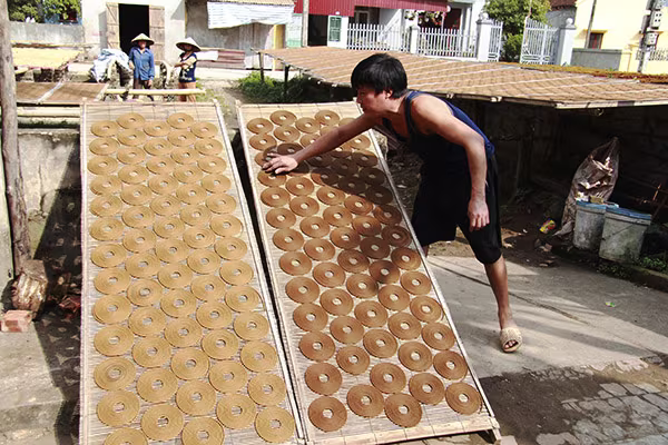 Sau khi làm xong, hương sẽ được mang phơi nắng trong ngày để giữ nguyên mùi vị
