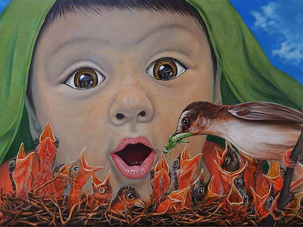 Người xem có thể tự tìm kiếm trong mỗi bức tranh sự đồng cảm về tuổi thơ, về nỗi niềm của họa sĩ trong cuộc khủng hoảng về môi sinh, những bức xúc về môi trường…