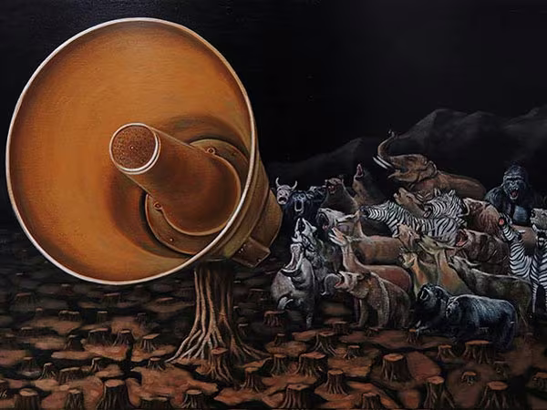 Chính bởi vậy, dù theo đuổi loạt tranh về thế giới động vật đã 3 năm, nhưng họa sỹ vẫn trung thành với lối biểu hiện, tuy có cường điệu nhưng không lên gân, mà nhẹ nhàng chuyển tải thông điệp đến người xem.