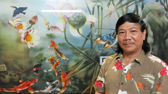 Nghệ nhân Phạm Hồng Vinh và bức “Mai Lan” vẽ bằng sơn móng tay