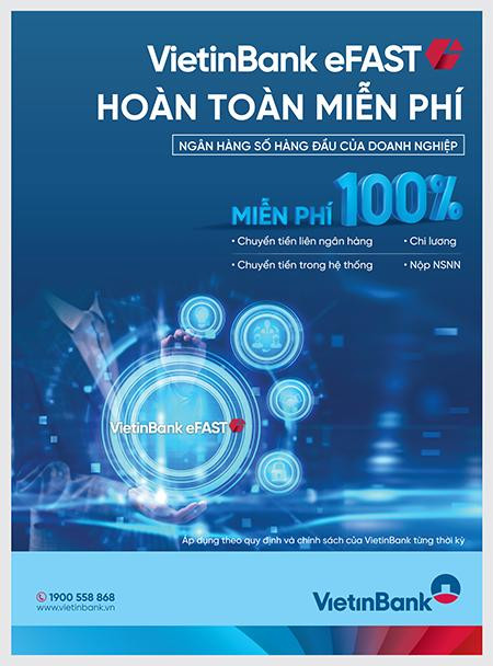 Năm 2022, VietinBank tiếp tục tung gói ưu đãi miễn phí dành cho các doanh nghiệp sử dụng Ngân hàng số VietinBank eFAST. Cụ thể, khách hàng khi giao dịch online trên ngân hàng số VietinBank eFAST sẽ được miễn 100% phí giao dịch chuyển tiền VND (bao gồm phí chuyển tiền VND trong và ngoài hệ thống, phí chi lương, phí nộp ngân sách Nhà nước); Giảm 50% phí chuyển tiền ngoại tệ và áp dụng tỷ giá ưu đãi tới 80 điểm tùy cặp đồng tiền.