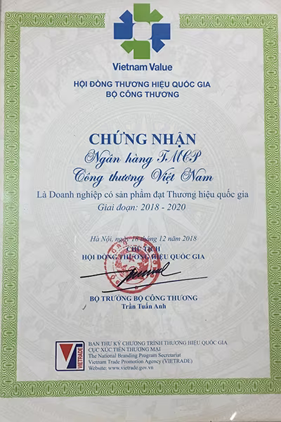 Chứng nhận và cúp Thương hiệu Quốc gia năm 2018 của VietinBank