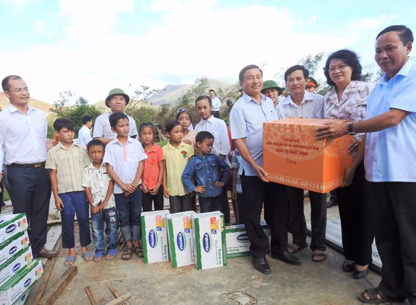 Bà Đặng Thị Ngọc Thịnh – Phó Chủ tịch nước, bà Lê Tuyết Mai - Phó Giám đốc Quỹ Bảo trợ trẻ em Việt Nam, ông Nguyễn Hồng Tú – Trưởng bán hàng vùng Vinamilk và đại diện lãnh đạo tỉnh Quảng Bình đến thăm và tặng quà, sữa cho người dân và trẻ em vùng lũ xã Quảng Xuân, huyện Quảng Trạch, Quảng Bình.