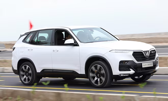 Chiếc SUV VinFast Lux SA2.0 đầu tiên chạy thử trong khuôn viên nhà máy với tốc độ mạnh mẽ.