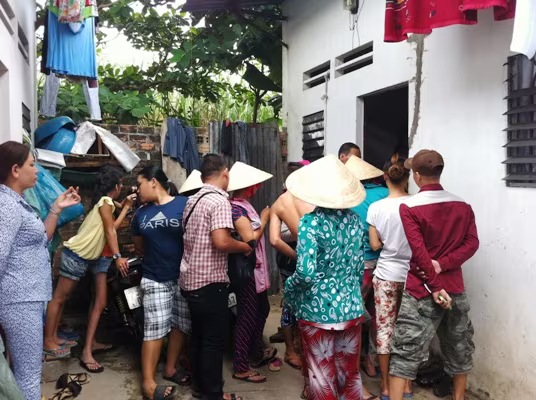 Nhiều người dân địa phương đến tận phòng trọ chia sẻ nỗi đau với vợ chồng chị H.
