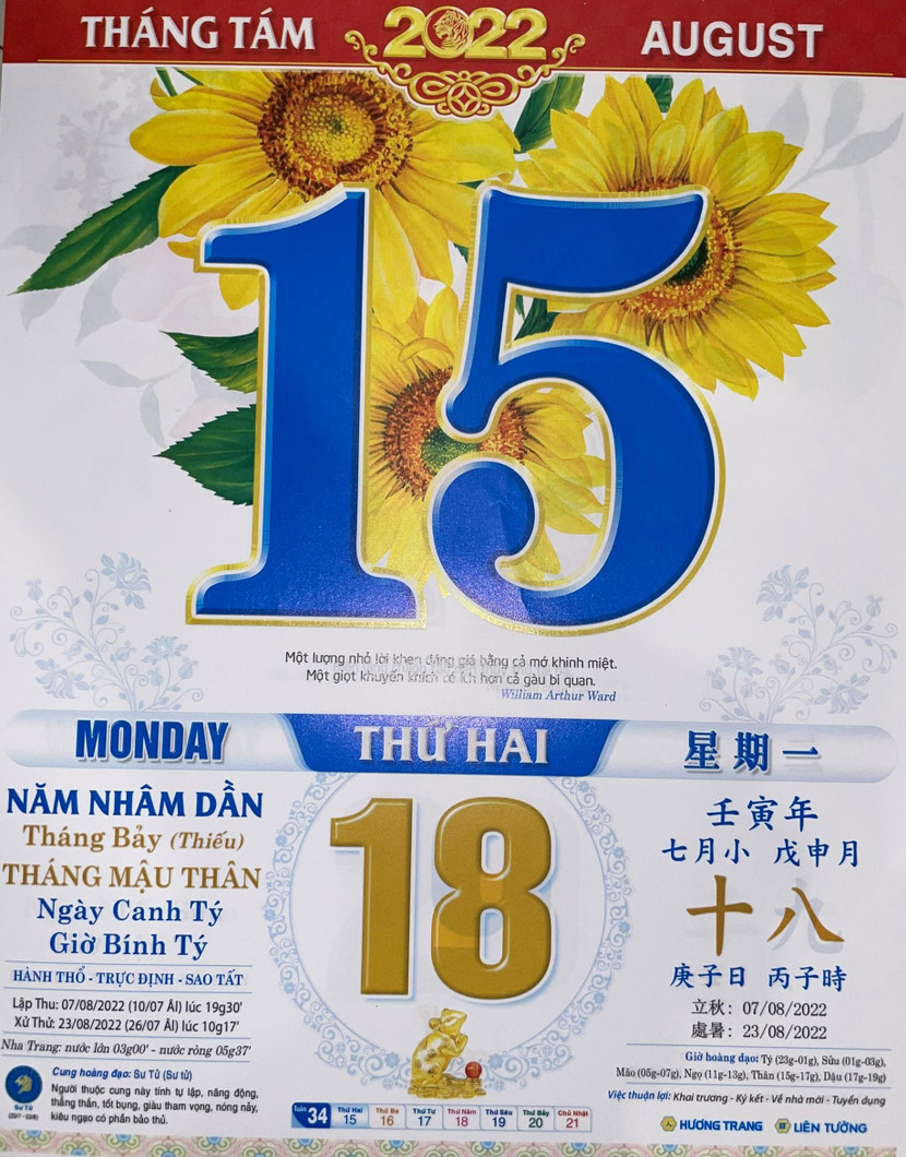 Thứ 2 ngày 15 tháng 8 năm 2022