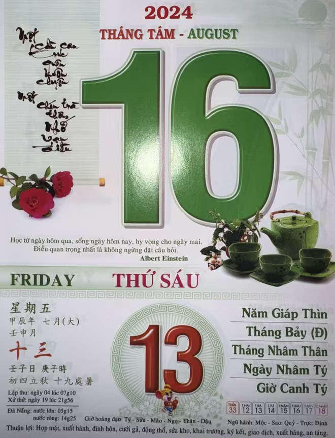 - Xem lịch âm - Lịch vạn sự hôm nay ngày 13 tháng 8 năm 2024 tốt hay xấu?
