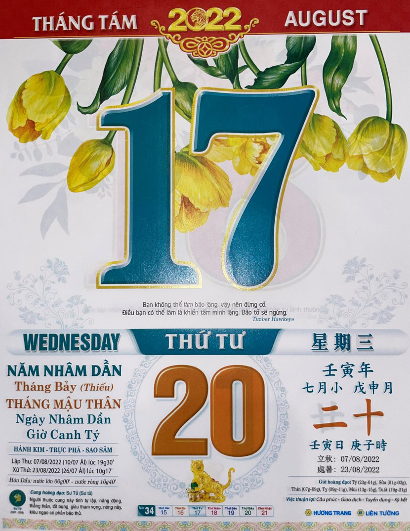 Thứ 4 ngày 17 tháng 8 năm 2022