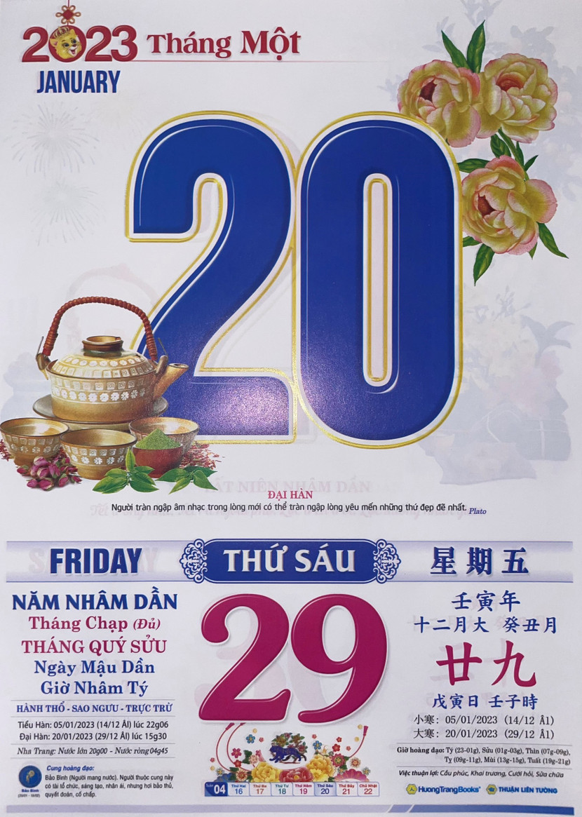 Đại Hàn: 20/01/2023 (29/12 âm lịch) lúc 15h30’