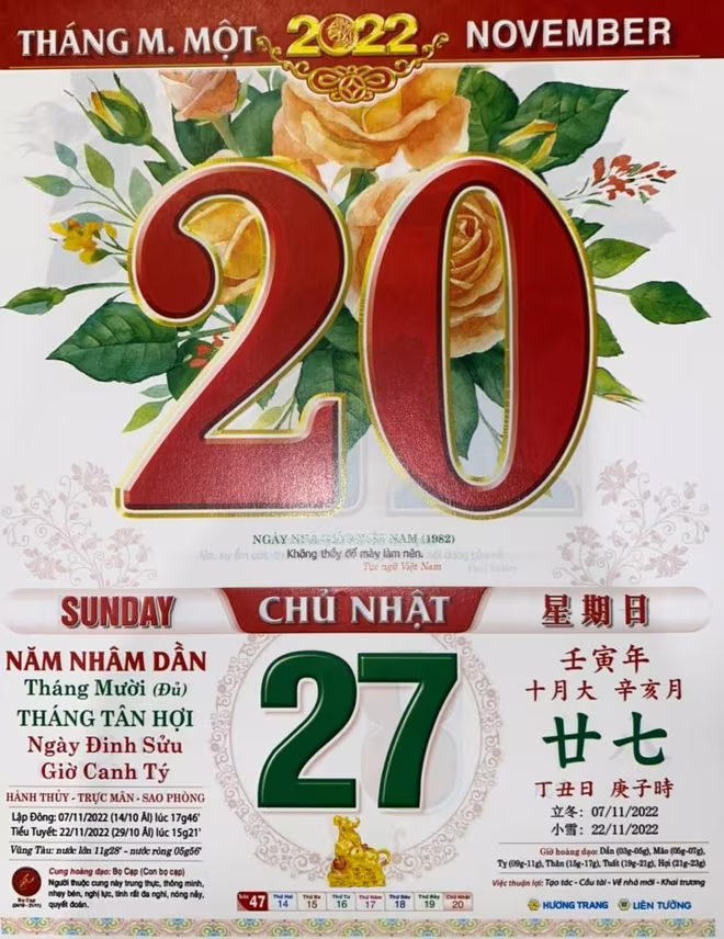 Chủ nhật ngày 20 tháng 11 năm 2022
