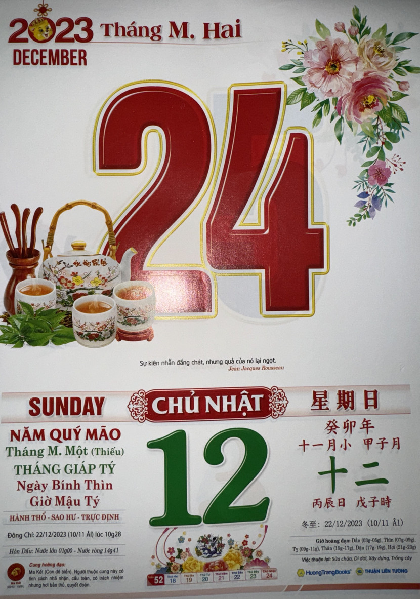 Chủ nhật ngày 24 tháng 12 năm 2023