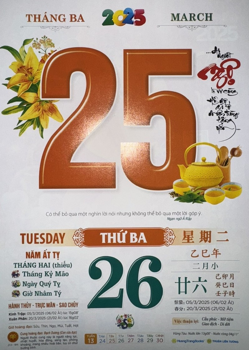 Thứ 3 ngày 25 tháng 3 năm 2025