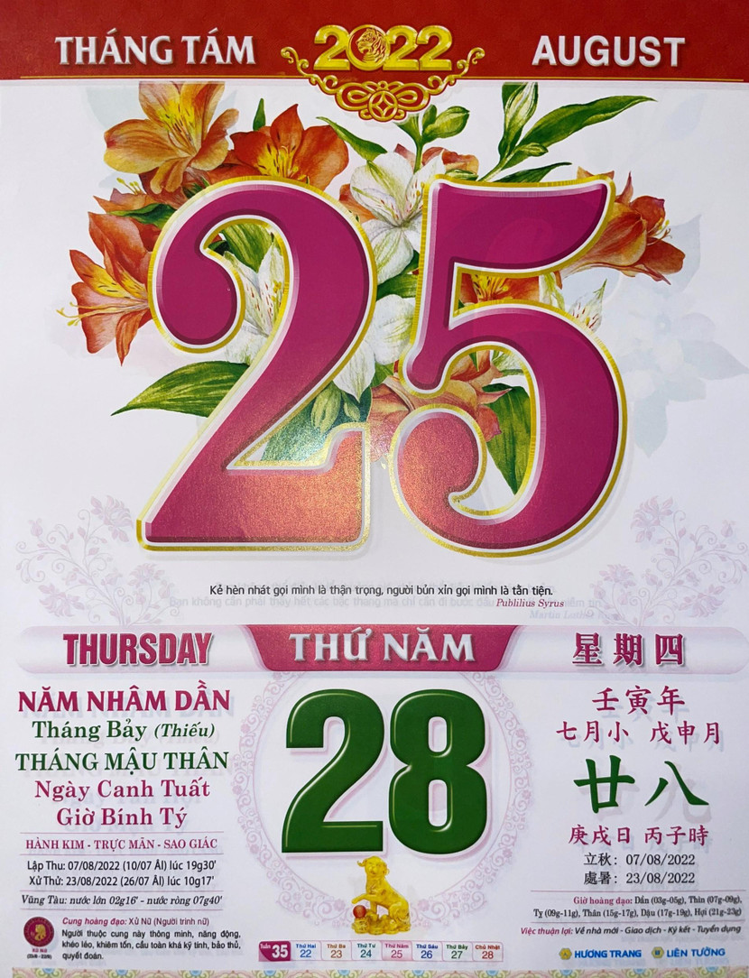 Thứ 4 ngày 25 tháng 8 năm 2022