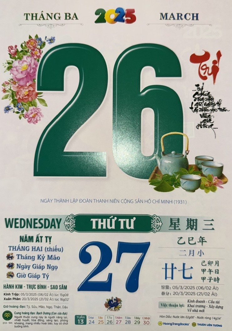 Thứ 4 ngày 26 tháng 3 năm 2025