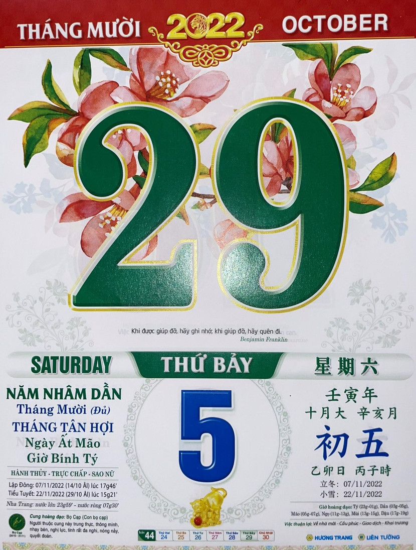 Thứ 7 ngày 29 tháng 10 năm 2022