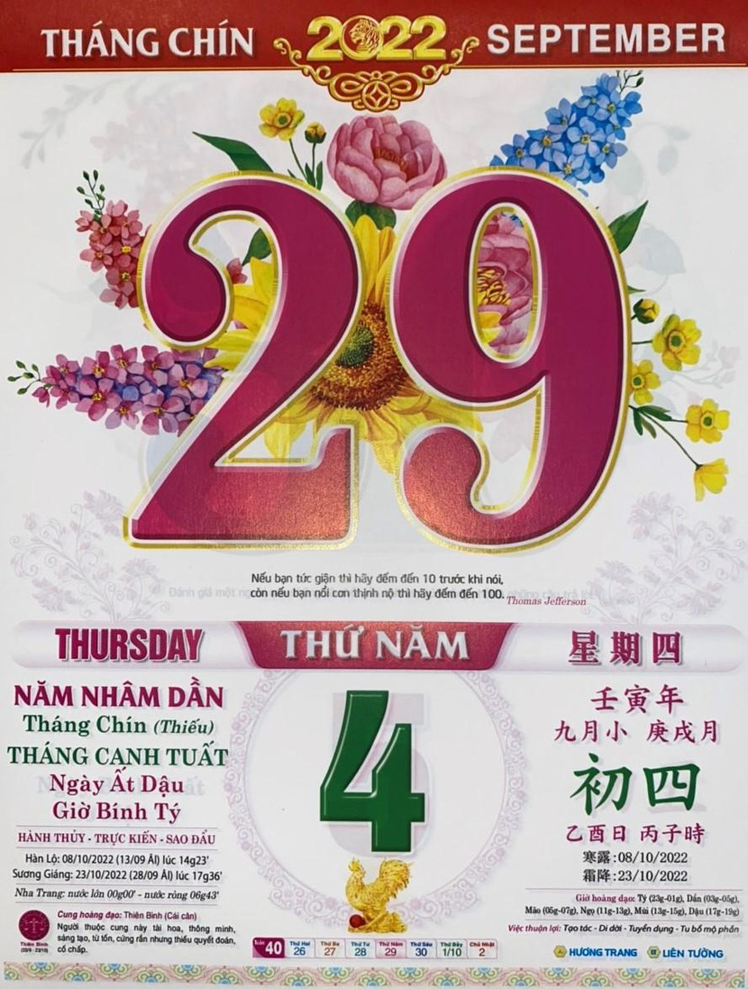 Thứ 5 ngày 29 tháng 9 năm 2022