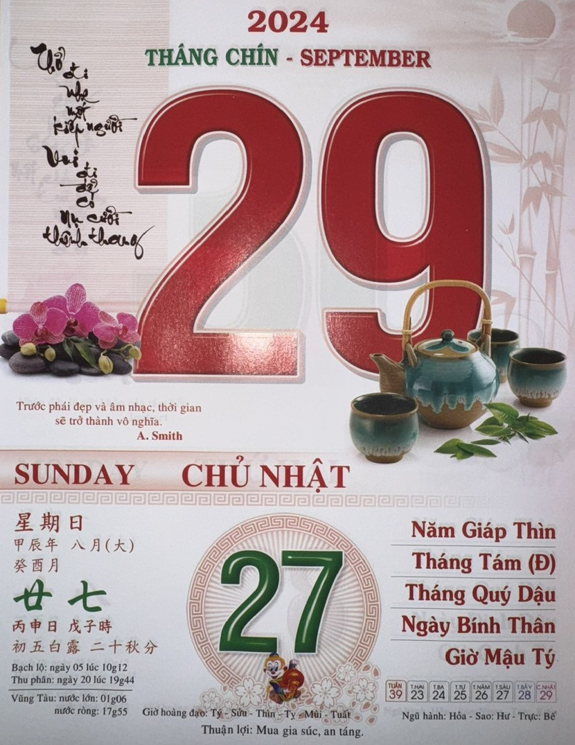 Chủ nhật ngày 29 tháng 9 năm 2024