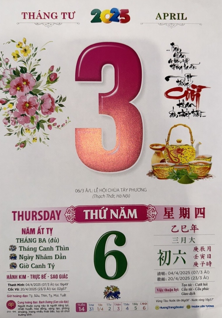 Thứ 4 ngày 3 tháng 4 năm 2025