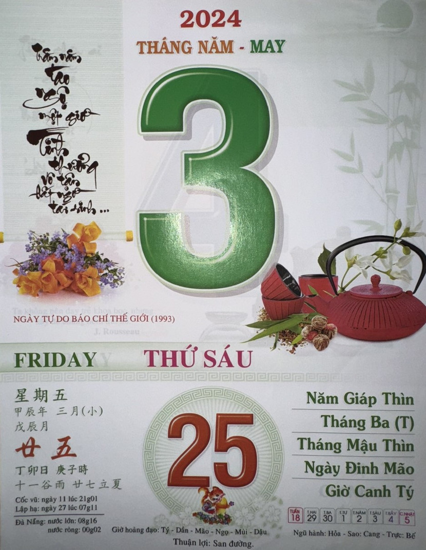 Giờ Hoàng đạo: Tý (23g-01g), Dần (03g-05g), Mão (05g-07g), Ngọ (11g-13g), Mùi (13g-15g), Dậu (17g-19g)