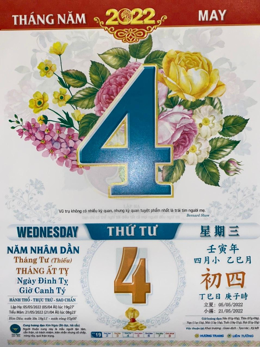 Thứ 4 ngày 4 tháng 5 năm 2022