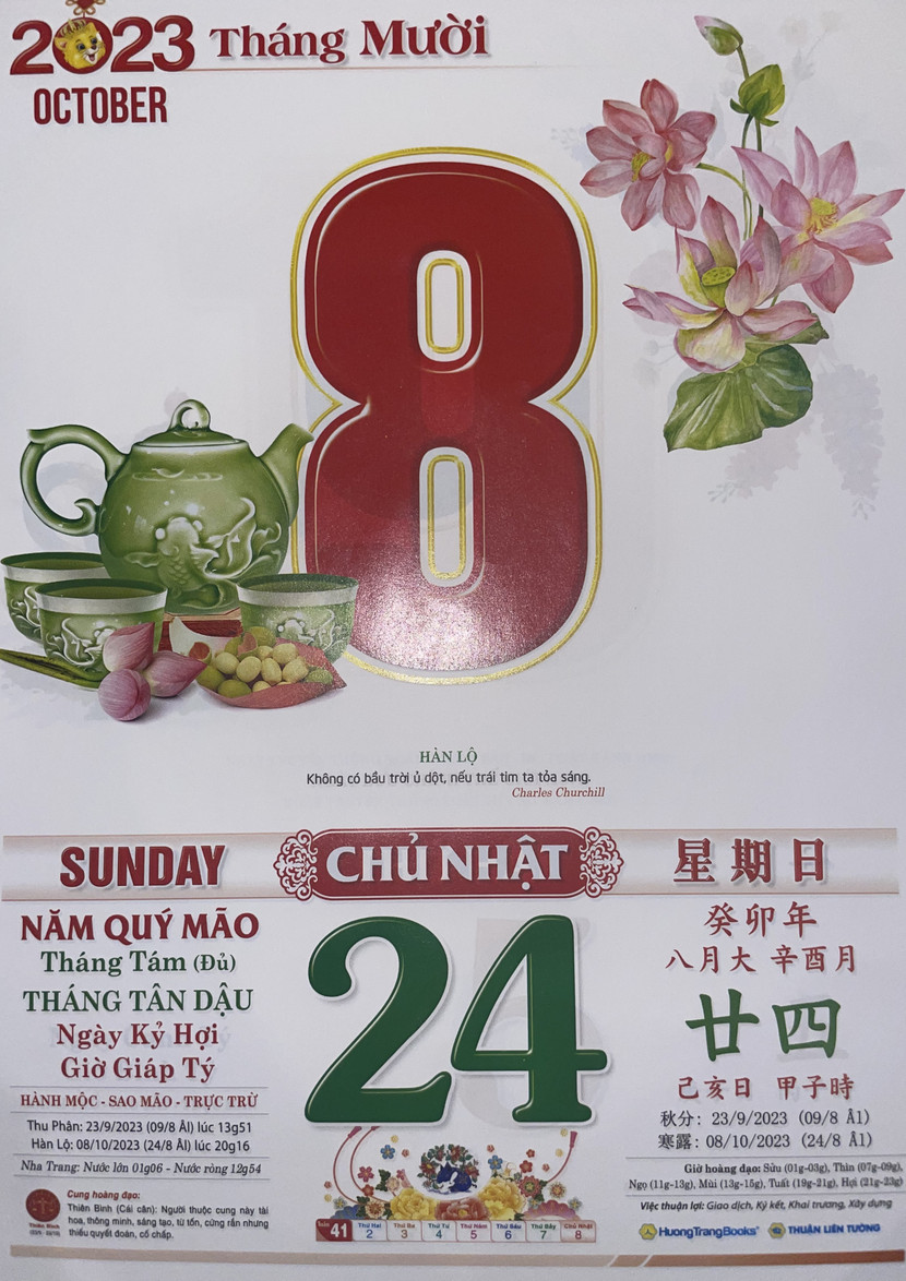 Hàn Lộ: 08/10/2023 (24/08 âm lịch) lúc 20h16’