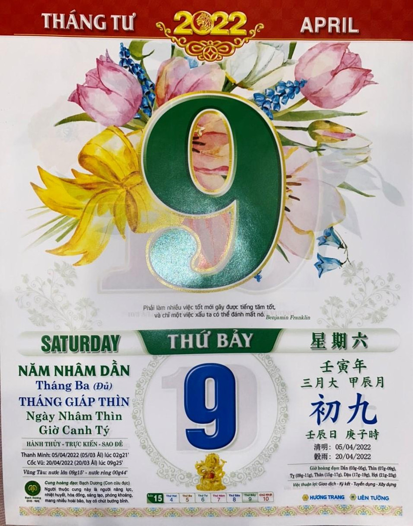 Thứ 7 ngày 9 tháng 4 năm 2022