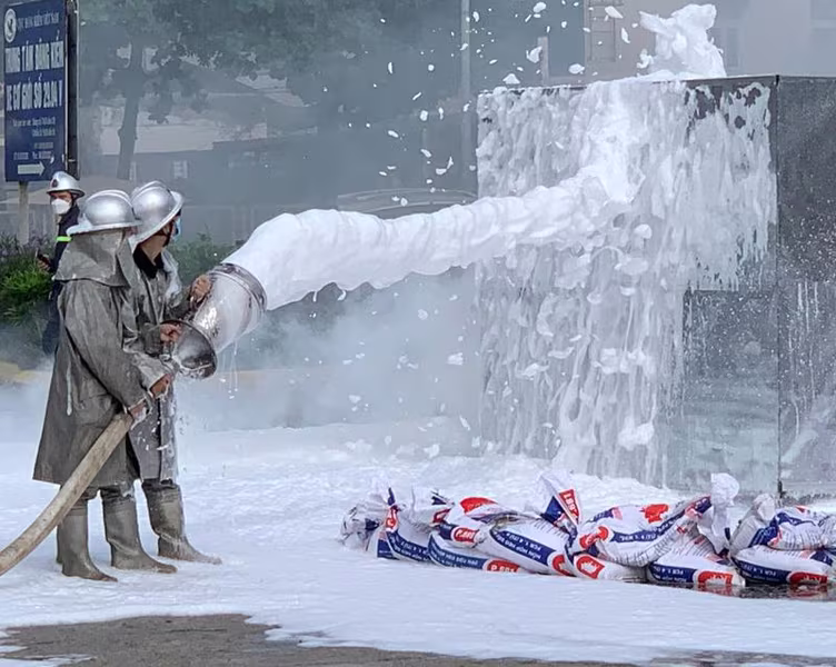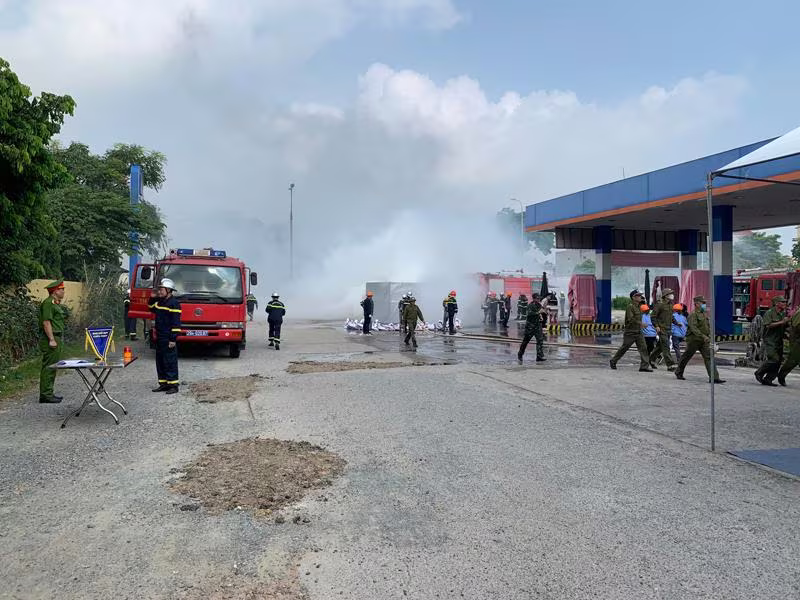 ANTD.VN - UBND huyện Mê Linh, Hà Nội vừa tổ chức diễn tập thành công phương án chữa cháy và tìm kiếm cứu nạn, cứu hộ có huy động nhiều lực lượng tại cửa hàng xăng dầu Nhật Huy, thị trấn Quang Minh.