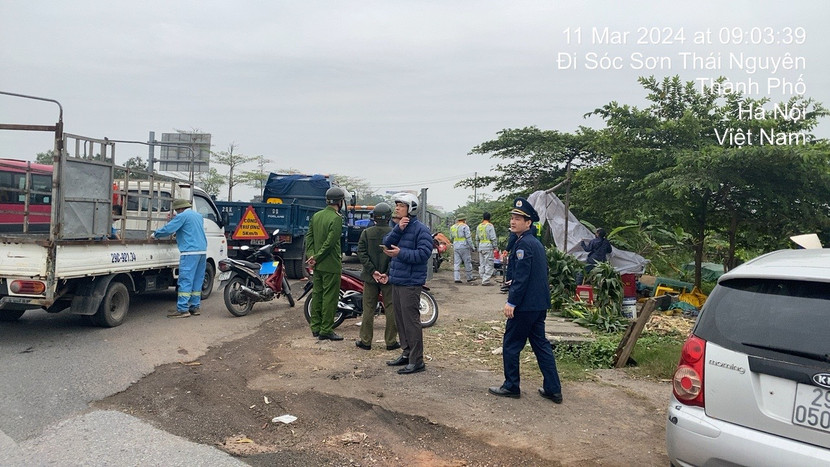 Thực hiện chỉ đạo của Huyện ủy, HĐND, UBND huyện Sóc Sơn, Công an huyện Sóc Sơn, Đội CSGT-TT Công an huyện phối hợp Đội Thanh tra GTVT Sóc Sơn cùng các lực lượng chức năng tiến hành giải tỏa các trường hợp vi phạm hành lang ATGT, các trường hợp cố tình không chấp hành tự giác tháo dỡ, chuyển dọn các vi phạm lấn chiếm lòng đường, vỉa hè, hành lang ATGT đường bộ trên tuyến Quốc lộ 2 đoạn qua địa phận xã Thanh Xuân và xã Tân Dân và đường nối từ Quốc lộ 2 với cao tốc Hà Nội - Lào Cai thuộc địa bàn huyện Sóc Sơn.